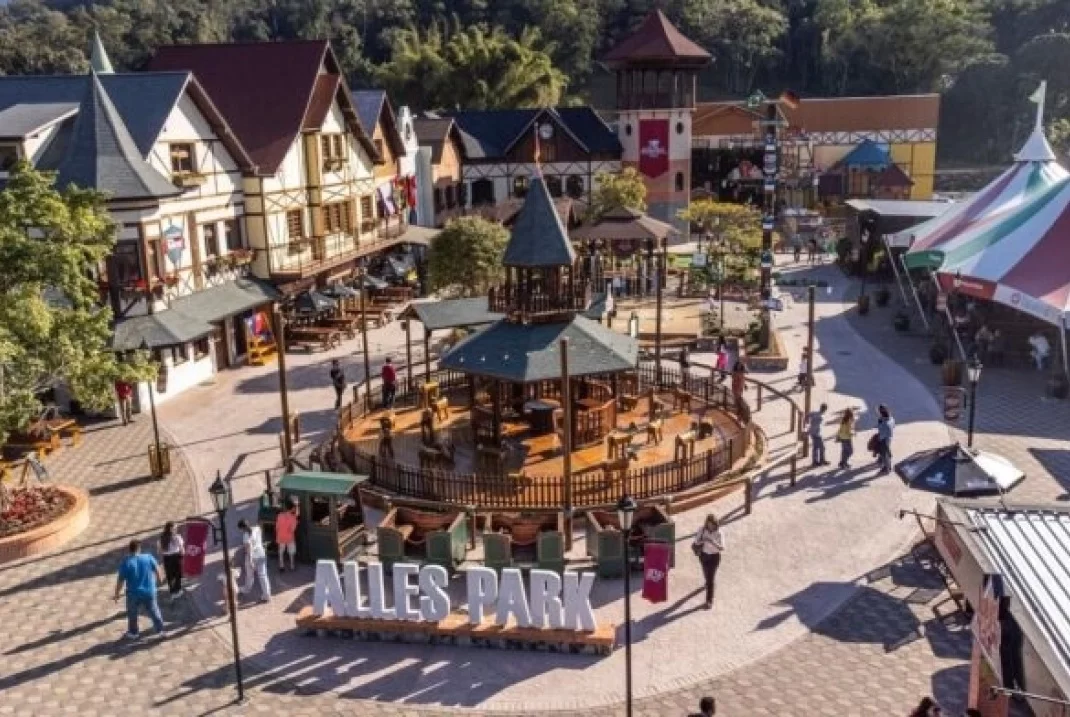 Há mais de dois anos, uma parte da Cidade Mais Alemã do Brasil está nevando o ano inteiro. Inaugurado em 2022, o Alles Park Pomerode surgiu do orgulho da tradição alemã junto à missão de proporcionar alegria aos visitantes.